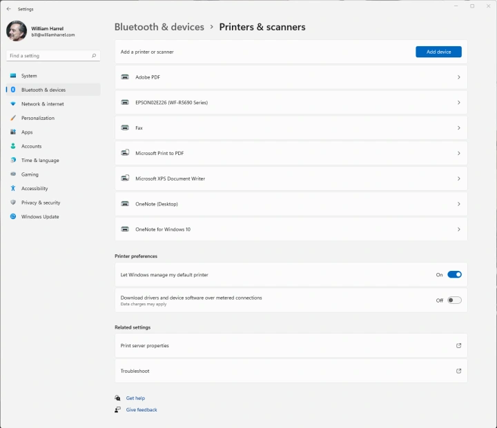 单击应用,打印机现在可以在您的网络上使用。要从另一台计算机连接,请返回到打印机和扫描仪菜单,然后单击添加打印机或扫描仪(Windows 10)或添加设备(Windows 11),此时应显示打印机。单击添加设备将打印机与您的计算机链接。