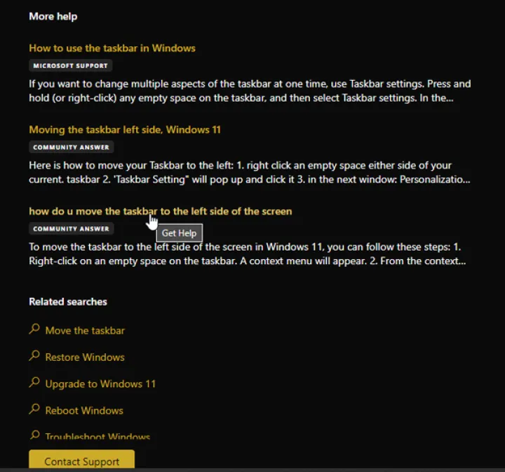 根据问题的不同,您可能会看到指向Microsoft支持或Microsoft社区论坛的文章和讨论的链接。如果是,请单击其中一个链接。您将被带到相应的网页。如果是支持文章,请阅读并遵循建议的步骤。如果是社区帖子,请查看信息。您还可以在搜索字段中键入问题的描述。