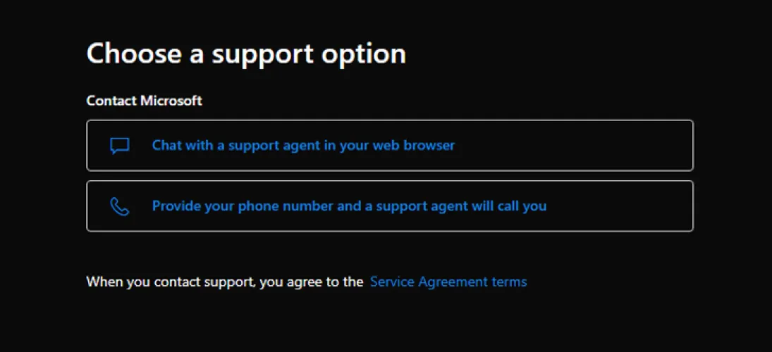 如果您想与某人聊天,请在您的Web浏览器中选择与支持代理聊天,然后等待代表的响应。然后你可以和那个人聊聊你的问题,希望它能得到解决。否则,请单击提供您的电话号码,支持工程师将呼叫您与Microsoft代表进行电话交谈。