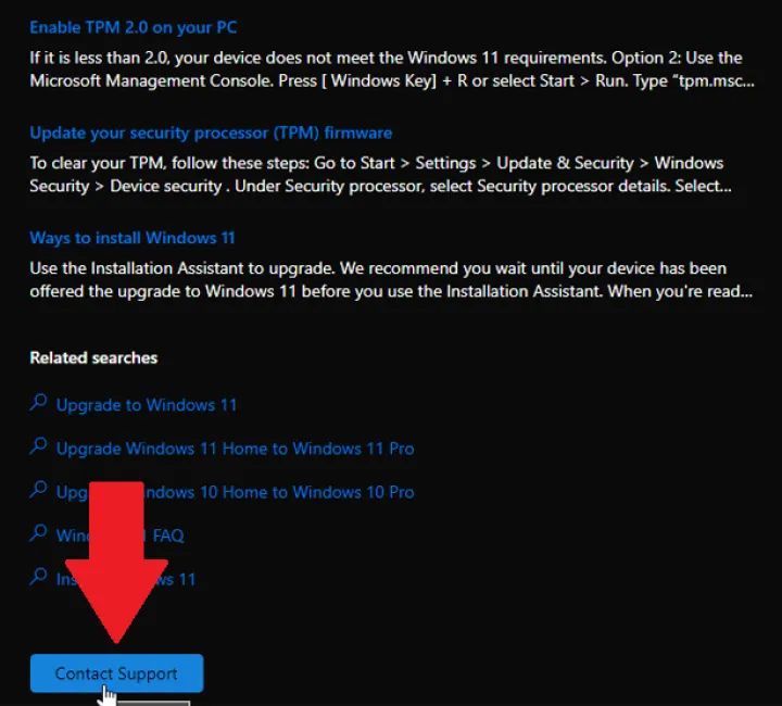 如果你仍然没有在虚拟支持和社区选项上取得很大进展,你可以通过Get Help应用程序与真人交谈。确保您已使用您的Microsoft帐户登录,然后单击页面底部的联系支持按钮。