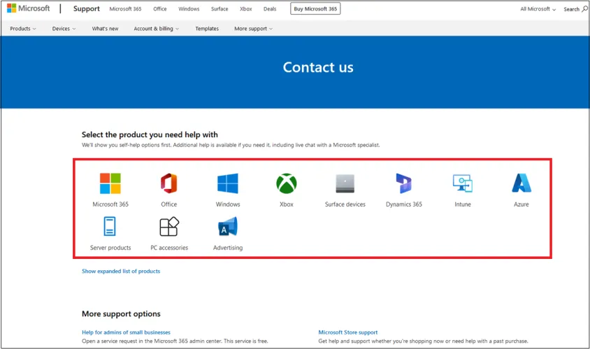 使用内置Windows支持应用程序的另一种选择是启动您的Web浏览器并转到Microsoft的Contact Us网站