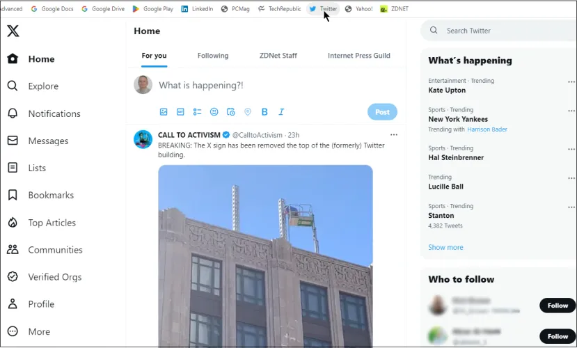 如果您在Web浏览器中使用Twitter,您还可以更改带有扩展名的图标。打开Chrome,你会看到Twitter图标现在闪烁着新的X。通过安装旧的Twitter扩展恢复到鸟的收藏图标