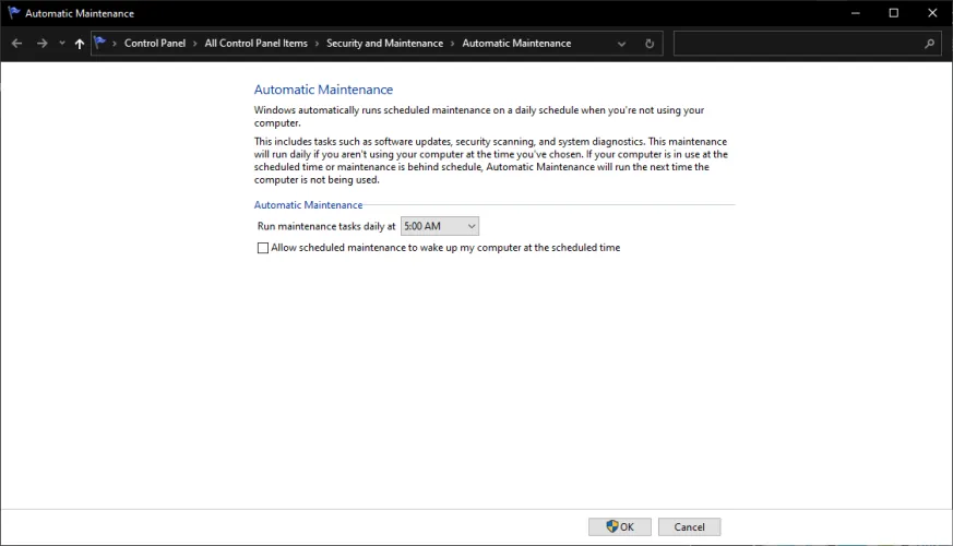 Windows还每天运行一组自动维护任务,称其中包括软件更新、安全扫描和其他作业。打开“开始”菜单,搜索“自动维护”,然后单击“更改自动维护设置”以打开控制面板。