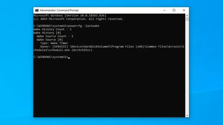 如果你幸运的话,它会给你一个明确的答案。例如,上一次我的工作站醒来时,是因为我的云备份程序正在运行晚上的计划备份。在这种情况下,您的搜索已结束,您可以调整该程序的设置或将其卸载以停止该问题。