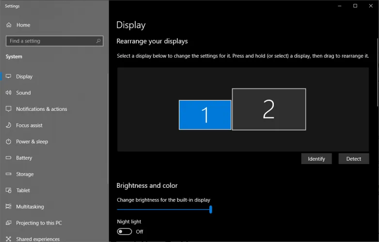 从这个页面上,Windows 10和Windows 11用户可以看到他们的显示器在导航连续性方面是如何匹配的。您可以拖动矩形,使它们与显示器在桌面上的方向相匹配;例如,如果一个略低于另一个,或者它们的顺序不同。你可能不得不做一些试验和错误来让他们正确地排好队。