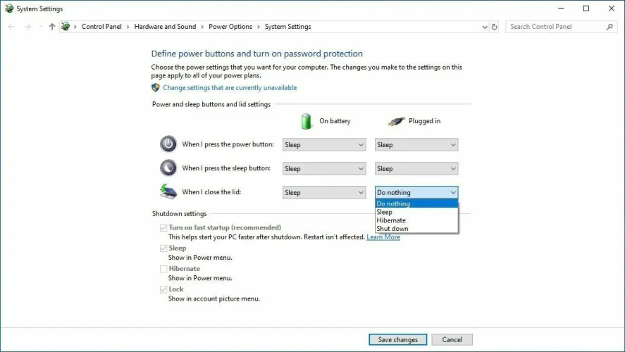 如果你有两个显示器,你可以在盖上笔记本电脑的情况下运行。在Windows中,从开始菜单中搜索单词“LID”。单击更改关闭盖子的功能可打开控制面板,并在某些情况下查看笔记本电脑的电源选项。