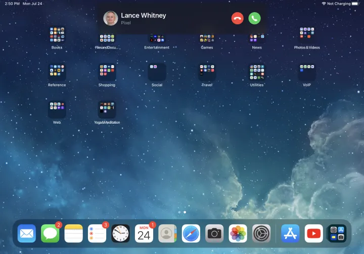 现在,当你的iPhone接到来电时,它也会在你的iPad和Mac上响起。点击Accept按钮,在iPad上接听来电并开始通话。在Mac上,会弹出一条小通知,提醒你有来电。单击Accept按钮在您的计算机上代答呼叫。