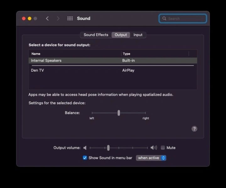 如果你是Mac用户,进入系统设置>声音,然后选择输出标签。确保正确的输出设备位于列表的顶部。如果不是,请选择您要使用的选项,并确保它出现在分隔其他选项的线的上方。