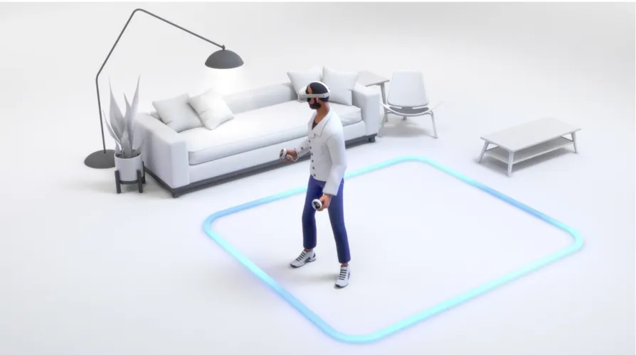 对于较小的空间,Meta提供了Guardian,它可以让你在VR中设置边界,当你接近游戏区域的边缘时,这些边界就会出现。固定模式创建3英尺乘3英尺的默认守护区域,而RoomScale为您提供更多的游戏空间,最大为6.5英尺乘6.5英尺。