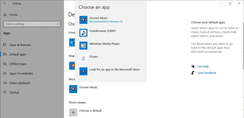 相比之下,在Windows 10(许多人仍在使用)中,选择默认音乐播放器总是很容易的。首先,点击设置的默认应用程序部分中的功能(如电子邮件、音乐播放器、照片查看器或网络浏览器)下面列出的应用程序。然后,选择一个能够处理媒体类型的新默认应用程序。这就是问题的全部。