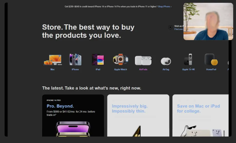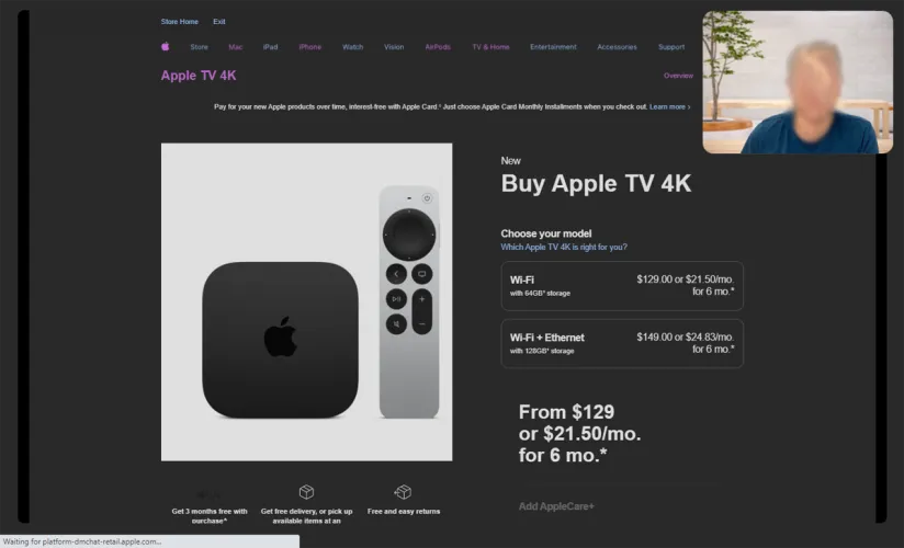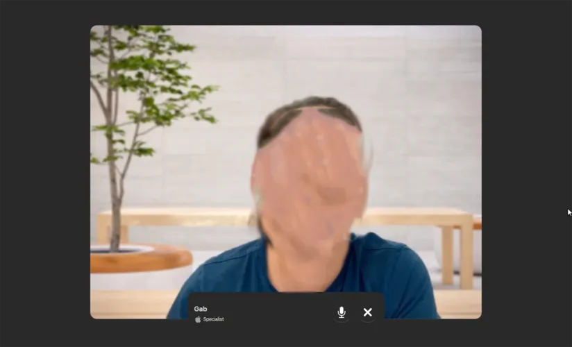 代表将出现在视频屏幕上,你们两个都能听到对方的声音。记住,尽管你能看到他们,但他们看不到你。销售代表可能会询问你的信息,比如你的名字、电话号码和电子邮件地址,并询问你是否有现有的苹果账户。