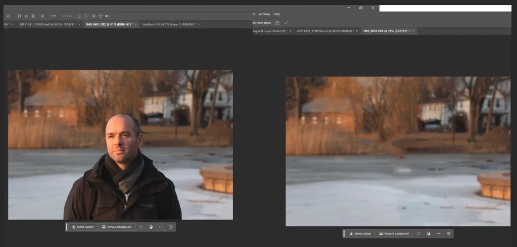 上面的例子相当复杂,我选择它是为了挑战Remove工具,并向您展示潜在的陷阱。但你应该知道,移除工具在一些镜头上效果非常好,特别是那些背景统一模糊、人体主体清晰的照片,如下所示。