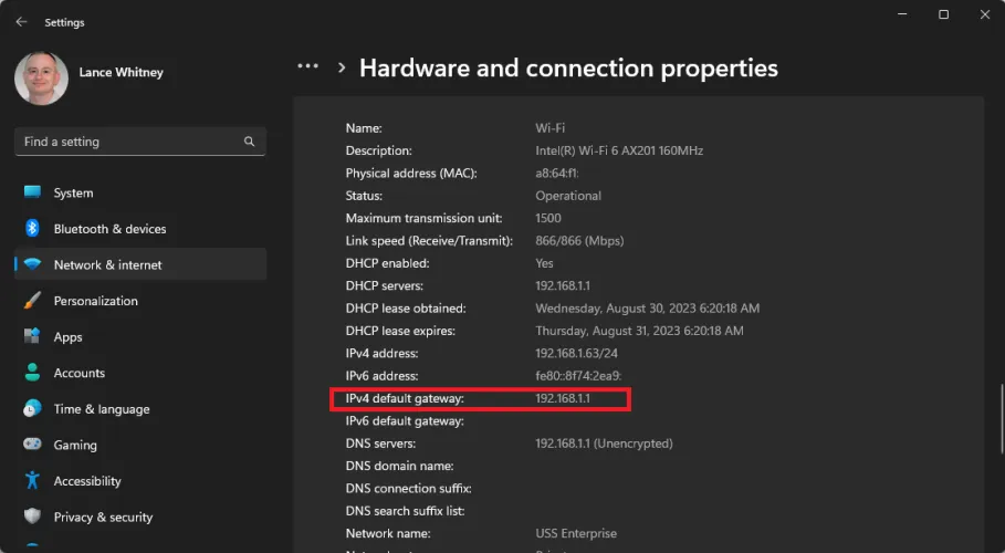 您还可以在Windows中找到您的路由器的IP地址。在Windows 10中,进入设置>网络和互联网>状态>查看硬件和连接属性。在Windows 11中,进入设置>网络和互联网>高级网络设置>硬件和连接属性。