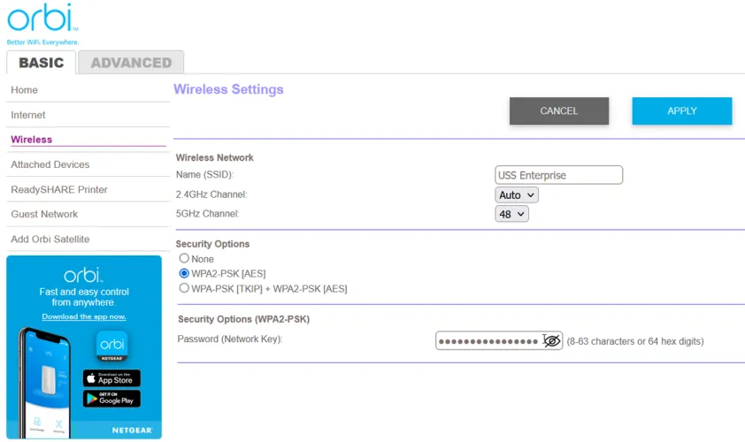 检查您的安全设置是待办事项列表中的另一项。在安全选项或类似部分下,确保您网络的安全设置至少为WPA2-PSK[AES],这将是大多数家庭路由器可用的最强级别。
