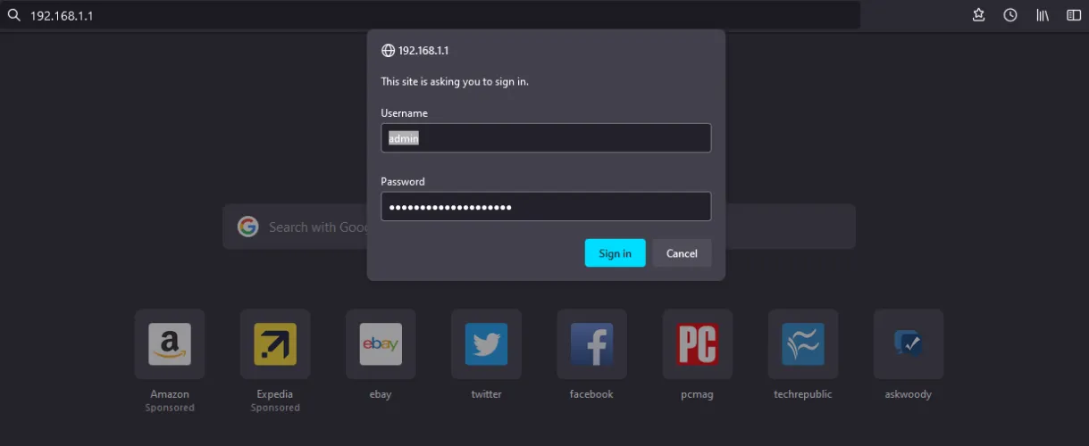 输入IP地址后,系统会要求您输入用户名和密码以访问您的路由器固件。这可能是路由器的默认用户名和密码,也可能是您在设置路由器时创建的唯一凭据。如果您不记得您的登录凭据,登录就会变得有点棘手。