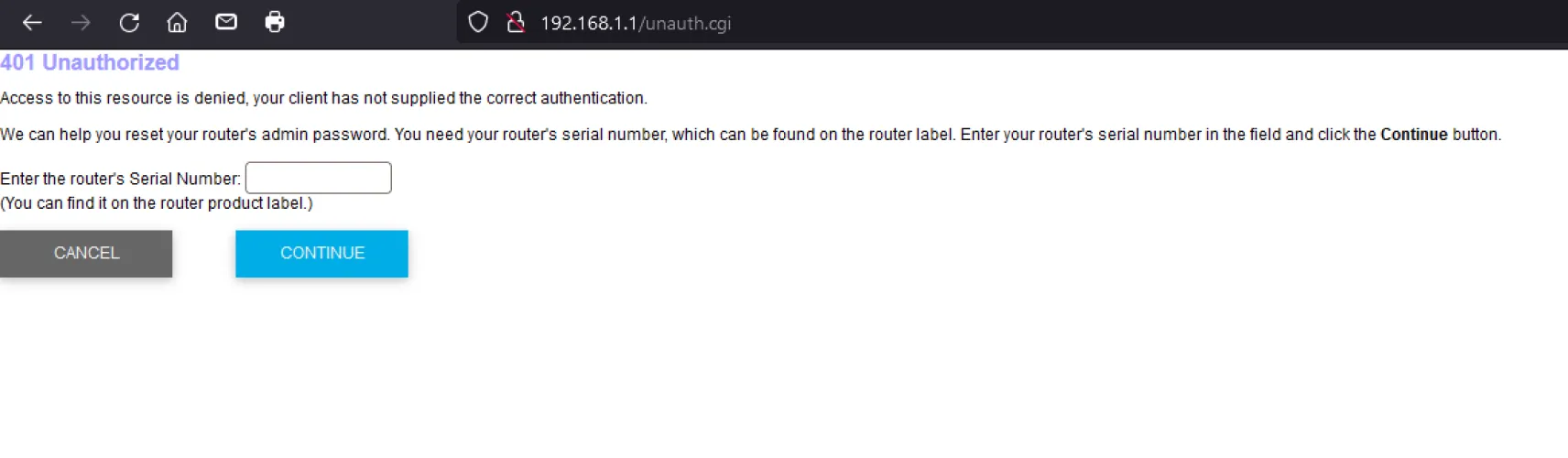 一些路由器提供自动密码恢复功能。如果您的路由器也是如此,则在您输入错误的用户名和密码一定次数后,应该会出现此选项。通常,此窗口将询问您的路由器的序列号,您可以在路由器的底部或侧面找到。