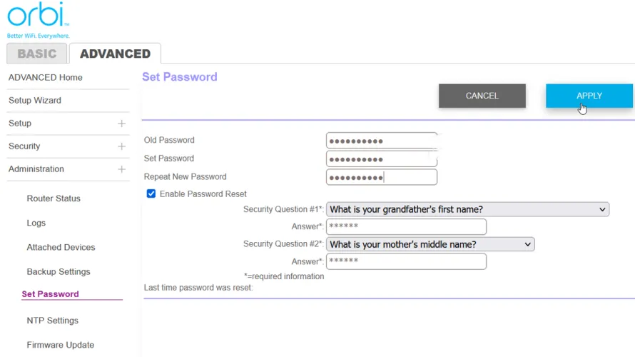 一定要记住新密码,这样以后就不必重置路由器了。您的路由器固件还可能要求您设置安全问题和答案,这是证明您身份的另一种便捷方式。然后,您必须应用这些设置并重新登录到您的路由器。