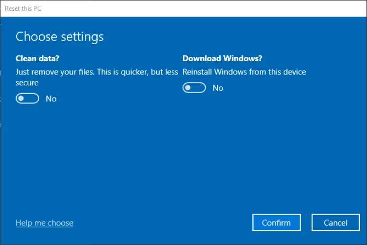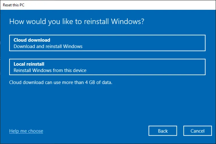 在点击重置按钮之前,您必须确定如何重新安装Windows。如果您更喜欢从本地存储安装Windows这一更为实际的方法,请选择本地重新安装。
