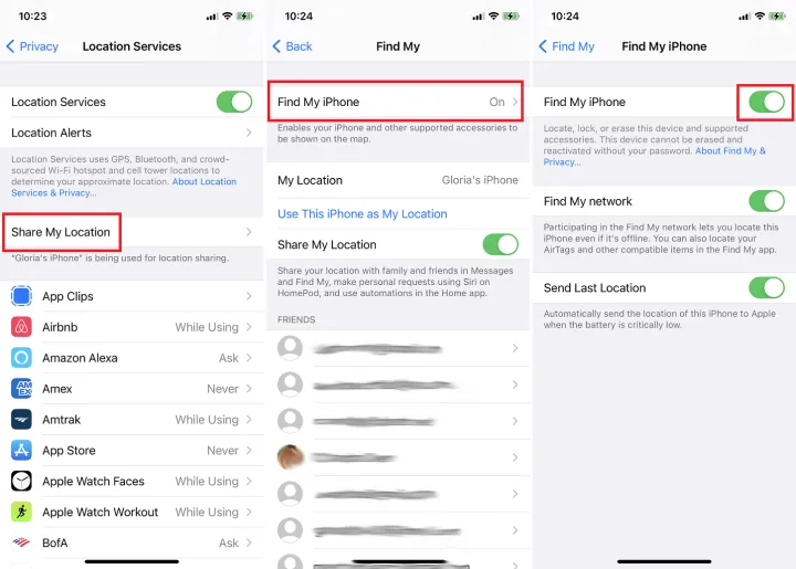 然而,如果你有隐私问题(或者你需要在销售旧设备之前禁用查找我的设备),打开设置,然后点击你的名字,然后转到查找我的>查找我的iPhone。关闭它并输入您的Apple ID密码以进行确认。