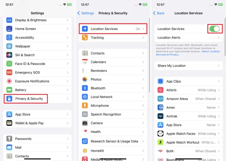要完全关闭定位服务,请导航至设置>隐私与安全>定位服务,然后关闭屏幕顶部的定位服务。不过,在这样做时要小心,因为您每天使用的大多数服务都将被禁用。