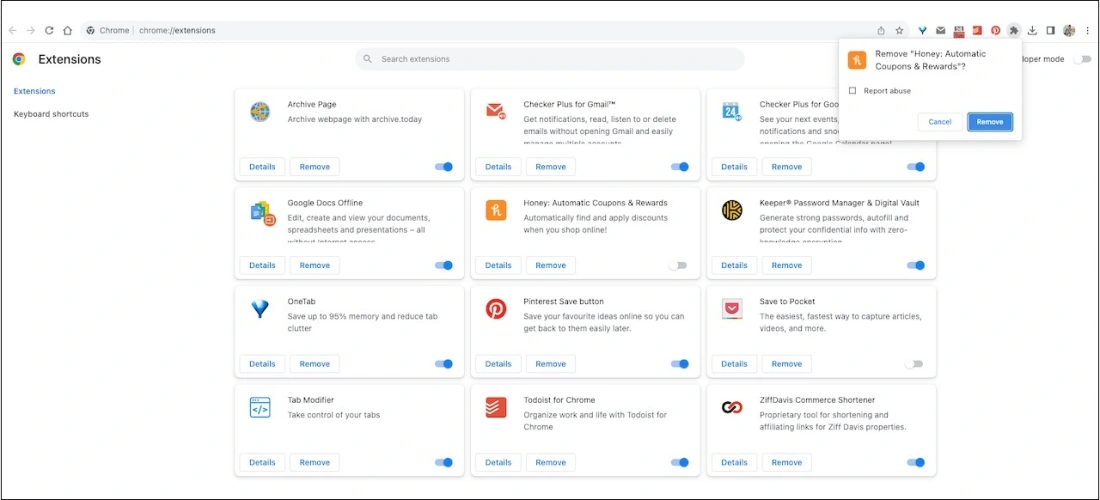 你删除的越多,你就会得到越多的速度提升。(更不用说安全提升了,因为扩展程序可能会被黑客入侵或出售给广告软件公司。)