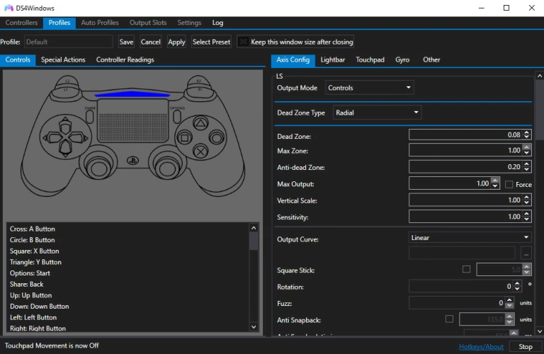 默认情况下,DualShock 4的功能类似于Xbox 360控制器,而触摸板则相当于鼠标。这就是说,DS4Windows提供了更多选择。要开始,请单击配置文件选项卡,然后双击默认配置文件(或创建您自己的新配置文件)。这使得DualShock 4的轮廓出现在各种设置的周围。在这里,您可以重新映射物理控制,对触摸板和运动控制进行编程,以不同的方式操作,调整隆隆声设置,并调整模拟杆的死区和移动曲线。您甚至可以更改灯光条的颜色。