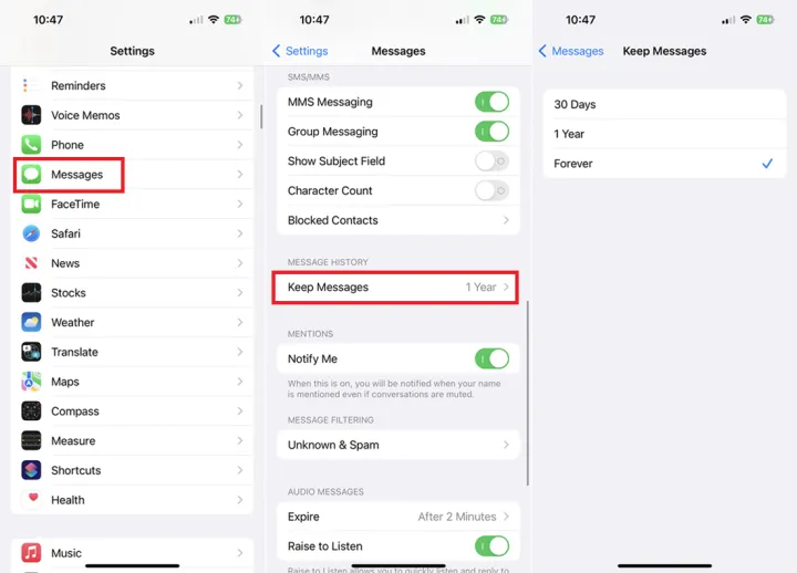 您错误地删除了一条消息,并希望将其恢复。没问题。您的iPhone会在一段时间内存储已删除的消息。要设置此功能,请转到设置>留言>保留留言。将已删除邮件的保留时间设置为30天、1年或永久。