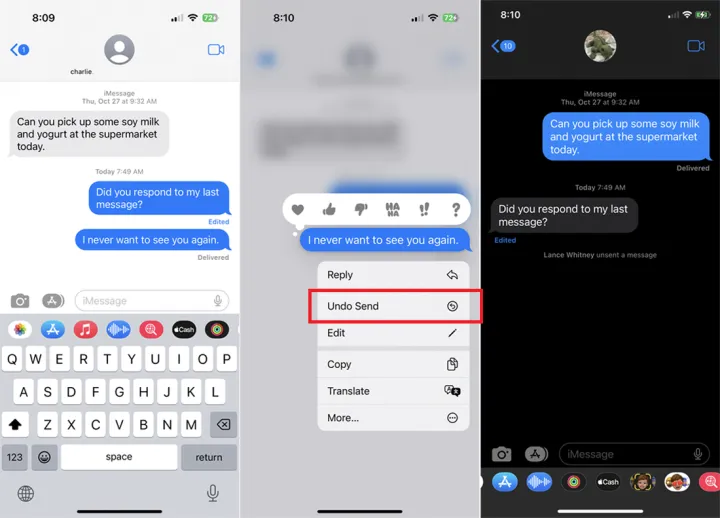 你是不是发错人了?如果你有理由收回一封邮件,你可以点击撤销发送。当您将文字发送给某人并想要将其取回时,按下文字,然后从菜单中选择Undo Send。然后,文本会消失在收件人那端,并显示您未发送一条消息的通知。