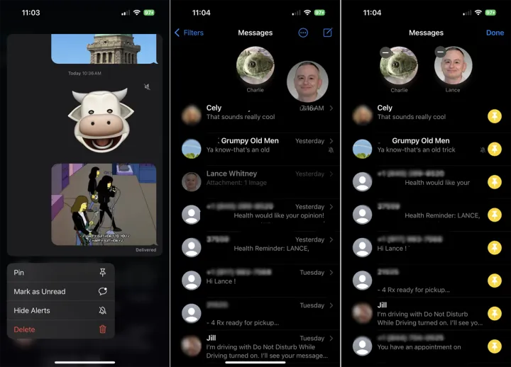 要将其移除,请按下销,然后从菜单中选择解锁。或者,点击省略号圆圈图标,选择编辑个人识别码,然后点击要取消固定的对话旁边的减号图标。