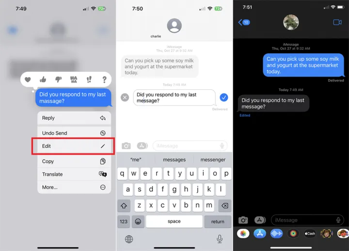 在iOS 16或更高版本中,你现在可以编辑你已经发送的文本,以防你需要纠正打字错误。如果您的收件人运行的是iOS 16、iPadOS 16、MacOS Ventura或更高版本,则更正后的消息将替换原始消息。如果他们仍然使用较旧的操作系统,该用户将收到一条新消息,其中包含更正后的文本,而原始消息仍带有一条通知,说明已进行了编辑。