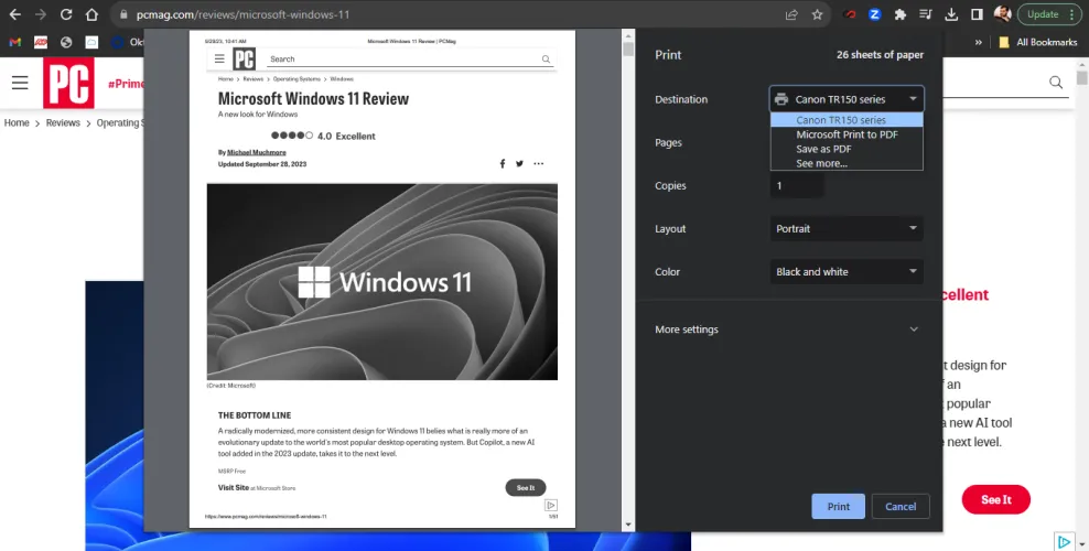尝试再次打印文档,并确保从菜单中选择文件>打印,而不是使用快捷方式。然后,密切注意出现的选项-如果下拉菜单显示的打印机不是您想要的打印机,请在继续之前单击它以选择正确的打印机。在一些程序中,比如谷歌Chrome,你甚至可能需要点击查看更多,才能看到已连接打印机的完整列表。