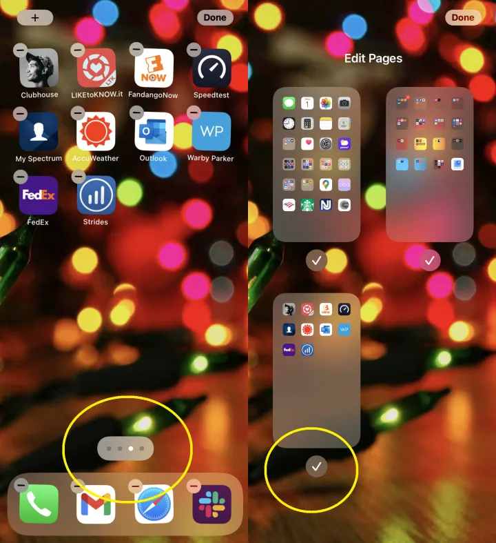 你的手机上有一些你想隐藏但不想删除的应用程序吗?把它们都放在一个屏幕上。然后将手指放在屏幕上进入摇动模式,然后点击底部的主屏幕滚动圆点。你会看到一个编辑页面界面,让你关闭整个应用程序页面的查看。这不会删除应用程序,您仍然可以向下滑动以访问Spotlight Search并轻松找到这些应用程序。但这是防止某些应用程序被窥探的一种快捷方式。