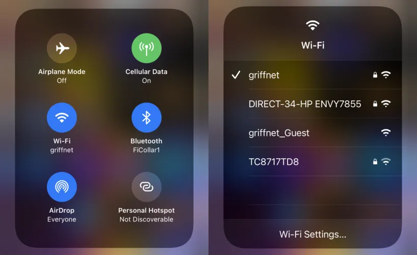 不要在每次想要手动切换Wi-Fi网络或蓝牙连接时都进入设置。相反,您可以刷到访问控制中心。左上角的部分将飞行模式、蜂窝模式、Wi-Fi和蓝牙的连接按钮组合在一起。长按群组,会弹出一个菜单,显示AirDrop和Personal Hotpot按钮。按下Wi-Fi可快速查看所有可用网络的菜单;按下蓝牙可查看可能的连接列表。