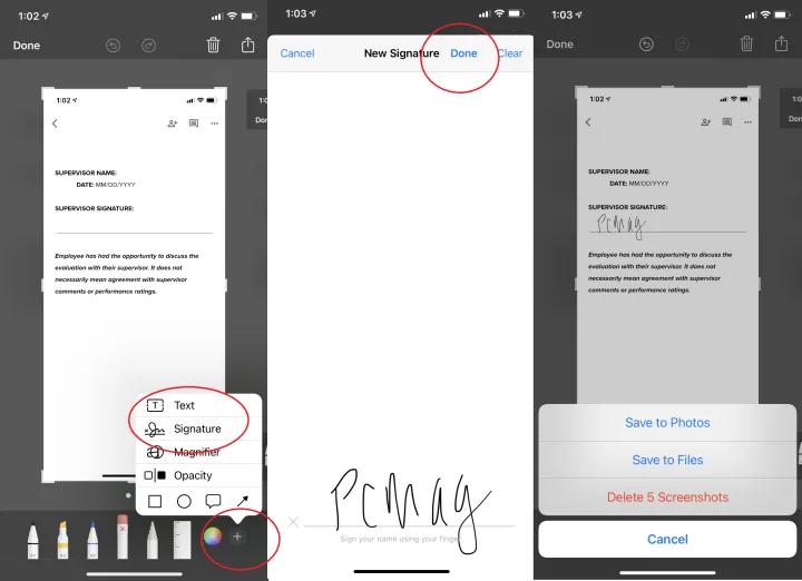 如今,并不是所有人的家里都有扫描仪和打印机,但苹果提供了一种用数字方式签署文档的简单方法。截取该文档的屏幕截图,然后点击缩略图。在右下角,单击加号。其中一个选项是签名。直接在屏幕上签名(或使用存储的签名)。点击完成,然后将其拖到屏幕截图中的文档中。放置签名,调整其大小,然后保存以供发送。