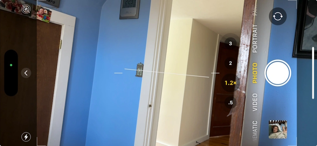 IOS 17相机的一项新功能是照片级别,屏幕上的水平线表示。当它水平时,这条线是黄色的。现在你会有一个更好的主意,如果你在任何一边倾斜太多,无论是纵向还是横向。倾斜到足够远,水平线就消失了,因为里面的陀螺仪假设你要以全荷兰角飞行。如果你看不到它,在设置>摄像头下打开它。
