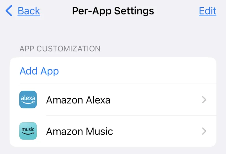 也许你想在特定的应用程序中使用更大的文本。你可以让它发生。进入设置>辅助功能>每应用程序设置>添加应用程序。选择一个应用程序,然后点击它以调整显示和文本大小、增加对比度、反转颜色等选项。