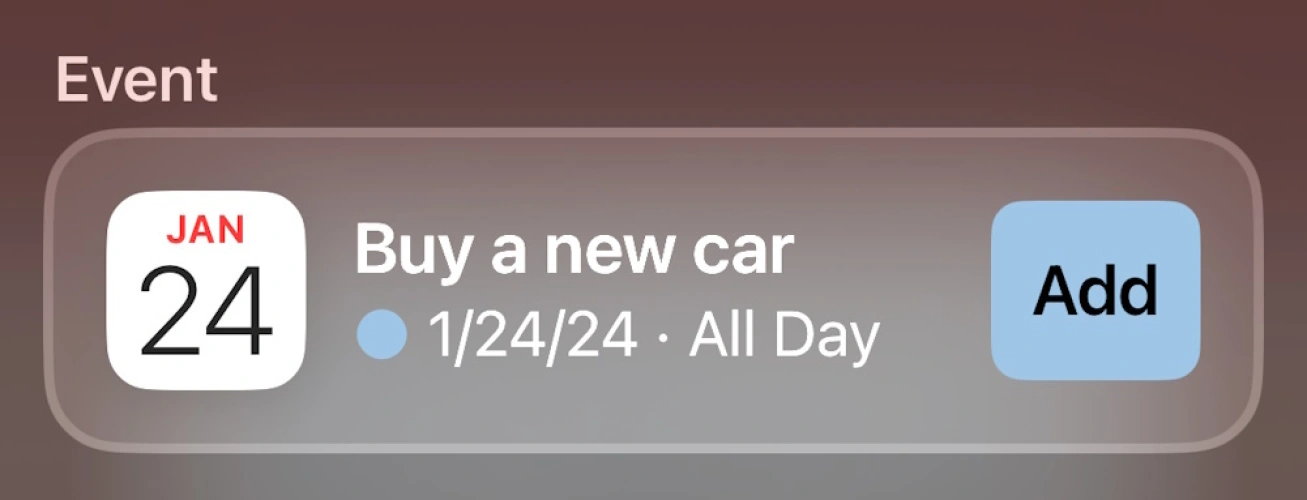 在iOS上的聚光灯搜索是通过向下滑动你所有的主屏幕图标来访问的,从那里你可以在手机上输入或说出你想要的东西。但是,如果你想做一个快速的日历条目,只需开始打字/聊天,并包括日期、时间和描述。IOS会解决这个问题,并在屏幕上显示一个条目,旁边有一个巨大的添加按钮,可以把它扔到你的默认日历上。