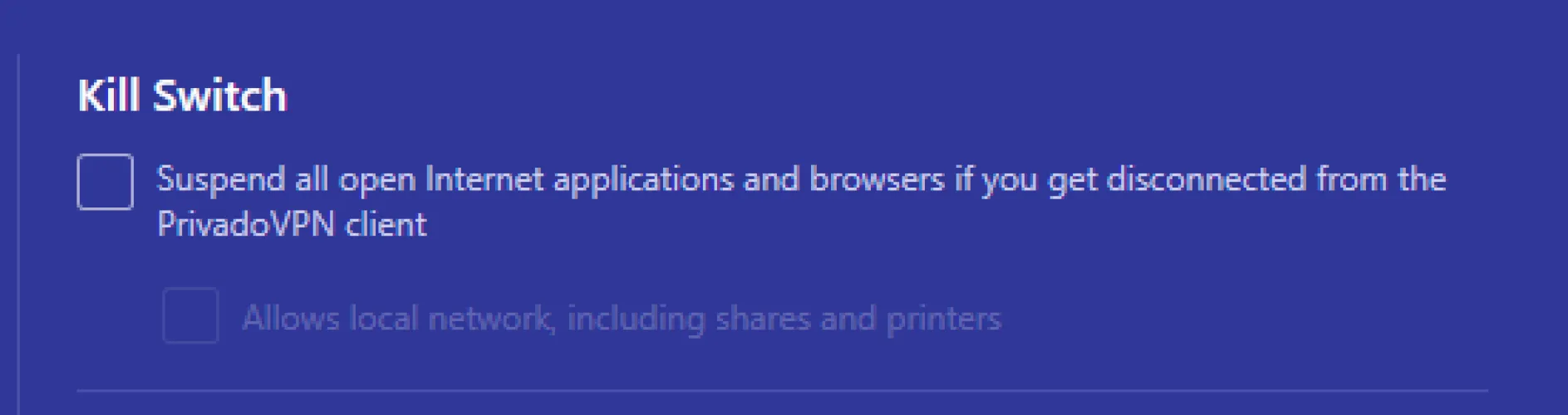 如果系统级终止开关检测到您的VPN已断开连接,它将完全切断您的设备与互联网的连接。这是两个选项中更安全的一个,但如果您的连接不可靠,则可能会带来更大的麻烦。