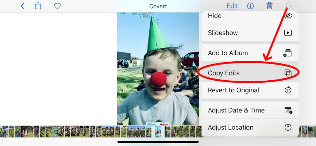 当你只使用手机摄像头应用程序创建一张漂亮的新图像时,你可以很容易地在其他图像上重新创建效果。进行编辑后,点击省略号菜单(…)>复制编辑。移到下一个图像,并在同一菜单中查找粘贴编辑。或者转到完整的相机胶卷,触摸选择,点击多张照片,然后使用菜单按钮选择粘贴编辑内容,并将其作为批处理进行更改。