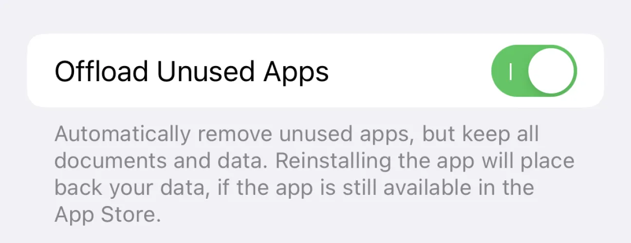 你的手机里有没有装满你从未用过的应用程序?在设置>应用商店中,打开卸载未使用的应用。当你几周后没有使用应用程序时,它们就会从你的手机上消失。不过,与该应用程序相关的任何数据或文档都会保留下来,所以如果你重新安装,它仍然有用。当你是一个重度玩家时,这是一个很好的技巧,因为游戏可能会占用很大的空间。腾出一些空间来享受新的乐趣。然而,请注意,如果应用程序被卸载,然后在此期间从应用程序商店中删除,您将无法再次下载它。
