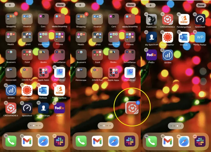 你的手机上有一些你想隐藏但不想删除的应用程序吗?把它们都放在一个屏幕上。然后将手指放在屏幕上进入摇动模式,然后点击底部的主屏幕滚动圆点。你会看到一个编辑页面界面,让你关闭整个应用程序页面的查看。这不会删除应用程序,您仍然可以向下滑动以访问Spotlight Search并轻松找到这些应用程序。但这是防止某些应用程序被窥探的一种快捷方式。