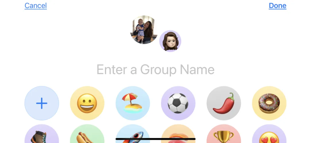 群发消息是任何好的消息服务的标志。在与其他iOS或MacOS用户的帖子中,你可以重命名对话。你也可以为群组分配一个最重要的表情符号或Memoji符号,以便于访问。点击图标下的[X]人物,然后点击更改名称和照片以提供组名称。您还将看到一部分化身选项。如果你不喜欢这些表情符号,无论如何都可以选一个,在下一个屏幕上,用任何表情符号代替。(现在,这甚至适用于该群中的非iOS用户,例如使用Android手机或愚蠢手机的人。)