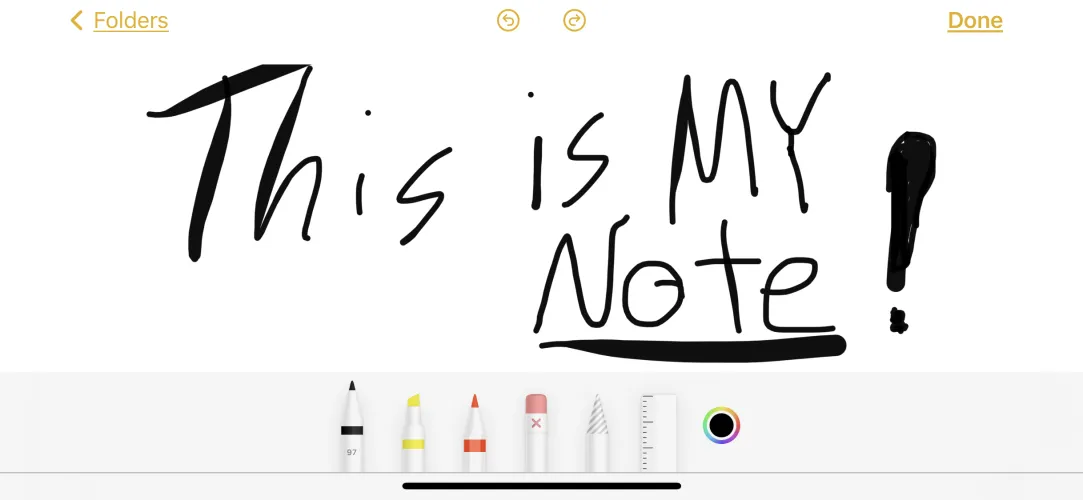 有时你只想写一张纸条–或者画个草图。你可以得到一些很棒的应用程序,但Notes应用程序也可以处理这一问题。在任何笔记中,无论是新的还是旧的,点击笔尖图标,底部的书写工具菜单–记号笔、荧光笔或铅笔–以及橡皮擦和套索,可以抓住绘图的整个区域。将手指按住该工具可选择不同的线宽选项。轻触色轮以更改虚拟链接或引线的颜色和不透明度。(苹果更新的自由形式应用程序在绘图方面也很棒。)