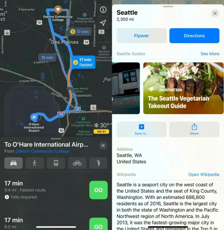 苹果地图多年来一直在改进,它甚至在某些领域超越了谷歌地图。例如,与谷歌地图及其信息过载相比,这款应用程序更简洁的视觉效果和界面使其成为一款出色的导航工具。尽管如此,同样的信息过剩使谷歌地图成为寻找企业和餐馆的首选工具。