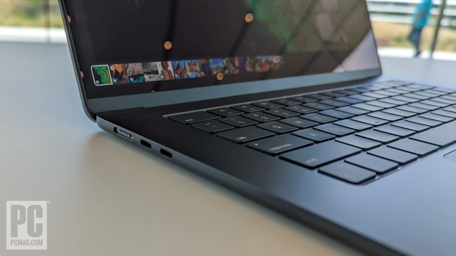 至少音响系统也变得更大了。15英寸的Air可以容纳六个扬声器,比之前的MacBook Air产生的声音更大、更大胆。这一六扬声器阵列的亮点是双低音扬声器设置,它将向上和向下发射的低音扬声器配对在一种被苹果称为“力量抵消声音”的配置中。