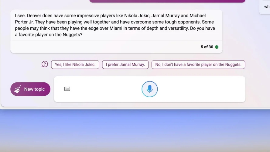 通过点击必应聊天功能上查询框中的新麦克风按钮并说出您的请求即可访问它。必应将通过文本回复和语音回应。