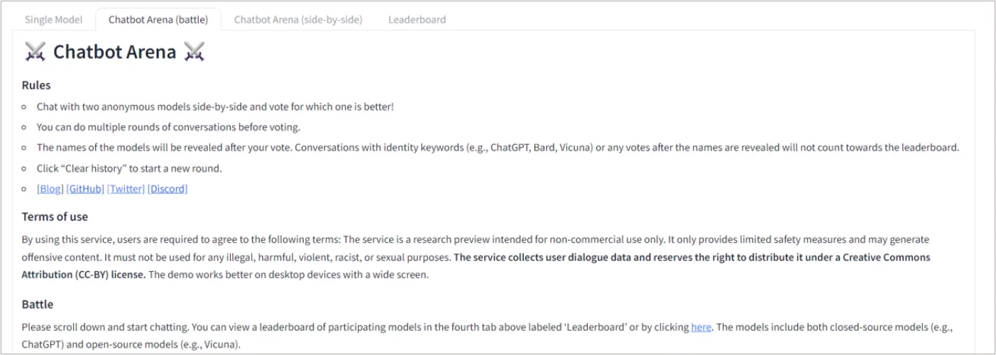 为了更多地了解生产性人工智能工具,加州大学伯克利分校与加州大学圣地亚哥分校(UCSD)和卡内基梅隆大学(CMU)合作,成立了一个名为大型模型系统组织(LMSYS Org)的组织。它由人工智能研究和计算机科学系的10名学生和4名教职员工组成。LMSYS Org创建了一项名为“聊天机器人竞技场”的实验,这是一个定制网站,任何人都可以在这里同时与两名模特匿名聊天。