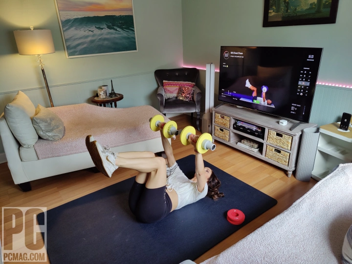 在演示过程中,我注意到Tempo的身体扫描提供了左、右二头肌的单独测量,这意味着它可能有助于识别身体的肌肉失衡。ElDeeb说,如果你的二头肌失衡,系统可能会要求你较弱的一侧有更多的代表。在这种情况下,它还可能会取消杠铃动作的优先顺序,这可能会加剧问题,转而支持哑铃练习。