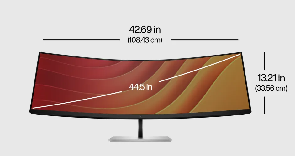 它的对角显示面积为44.5英寸,长宽比为32:9,占据了相当大的办公桌空间,宽约43英寸,高约13.21英寸(不包括支架)。但一对24英寸的显示器将占据同等大小的空间。我在Windows和Macintosh电脑上都试用了E45c显示器,虽然惠普为Windows提供了更多的软件,但它在这两种电脑上都运行得很好。