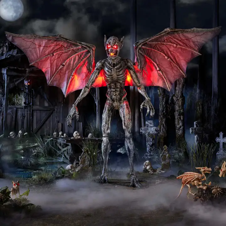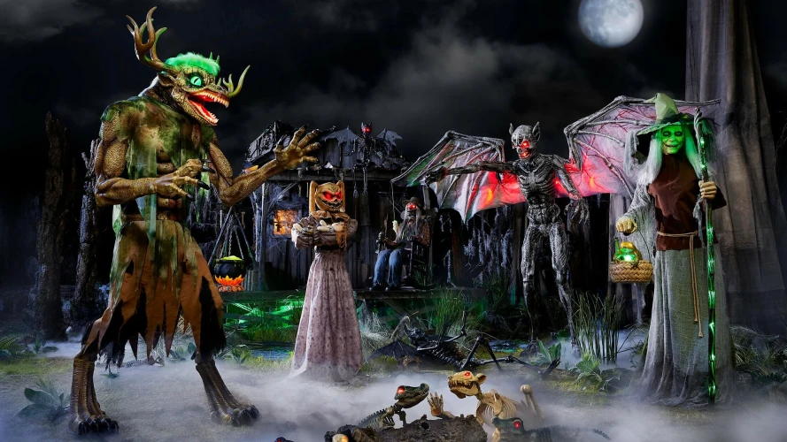 万圣节前夕的阵容包括许多其他令人驻足的作品,比如9.5英尺高的动画道具–拥有12.5英尺翼展的动画道具–这是该零售商提供的最宽的道具。售价349美元的The Predator of the Night道具是该零售商新推出的以幽灵沼泽为主题的死水系列的一部分,它还配备了一个用于逼真移动头部的伺服电机,以及一个带有锋利牙齿的发光下巴,看起来真的很可怕。